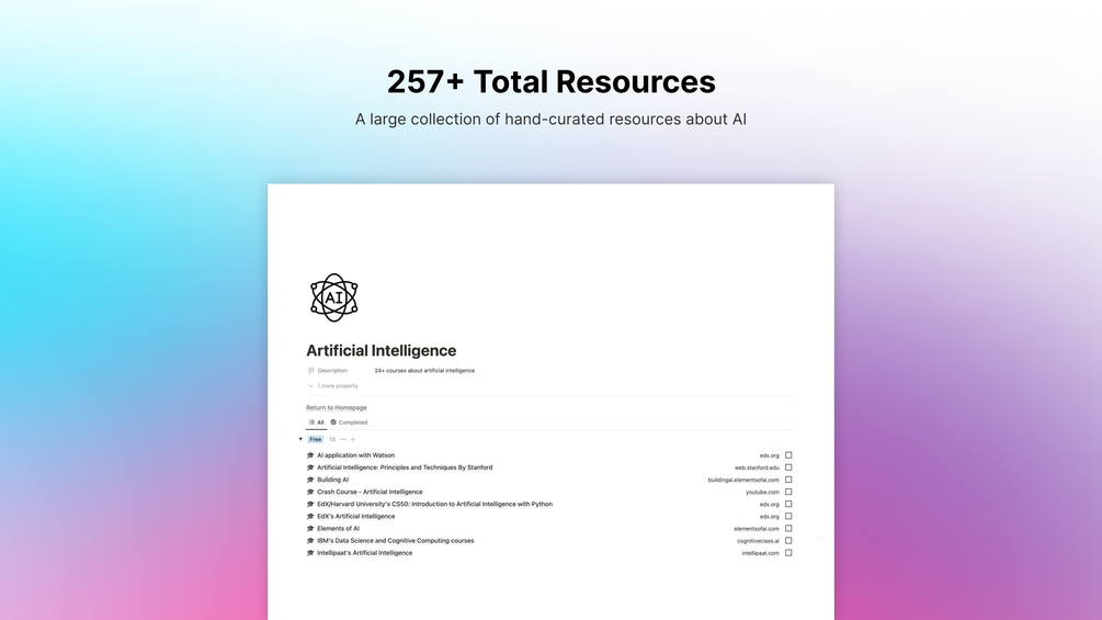 This template has a total of 257+ resources to help you become an AI master. Everything you need to know about it can be learned by using this resource book. Get your copy and spend the time now to start building your own AI creations!