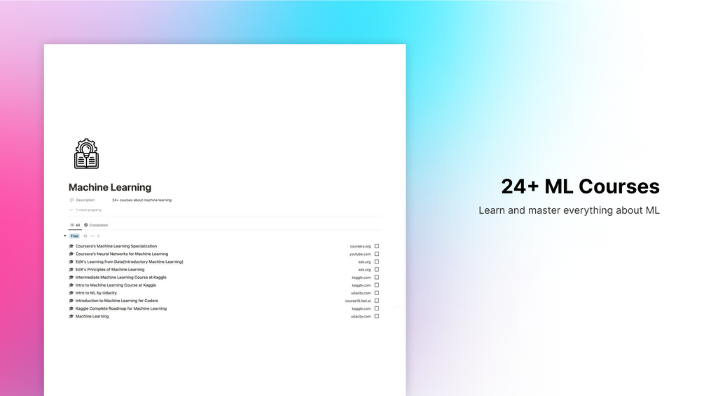 - 24+ courses about machine learning