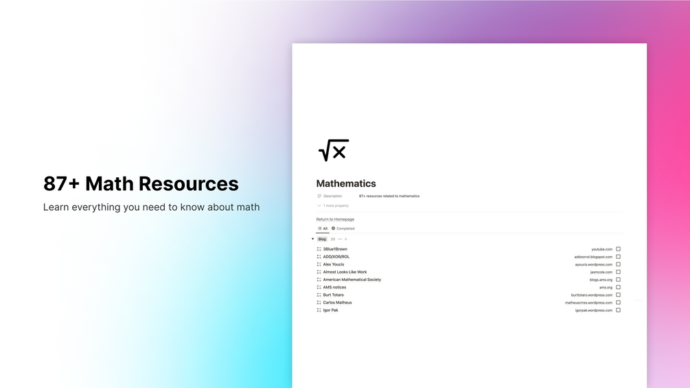 - 87+ resources related to mathematics