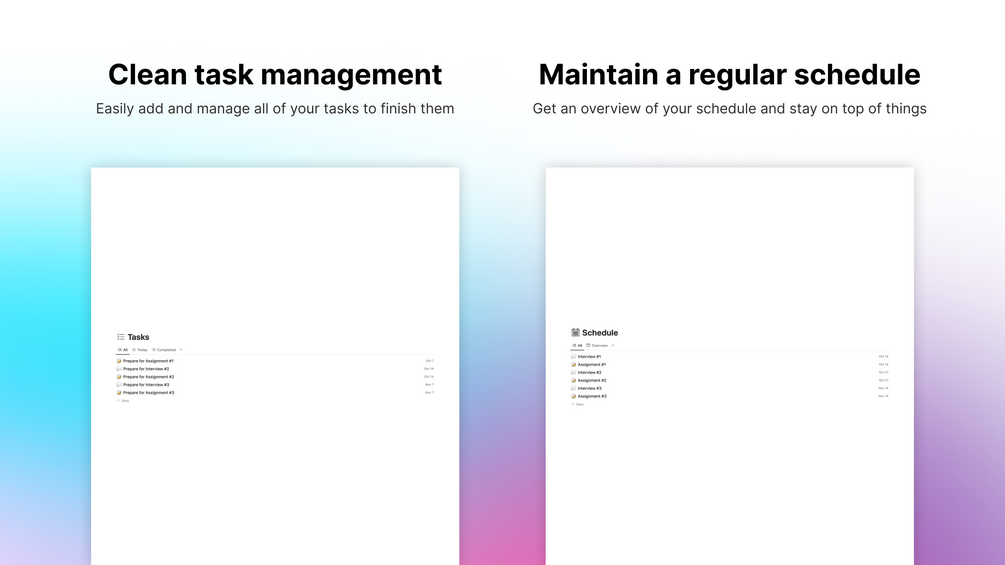- Schedule to manage interviews and tasks